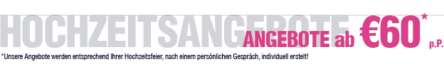 Bei der Planung Ihrer Hochzeitsfeier werden Sie, durch einen unserer Hochzeitsberater, durch die Angebotserstellung geleitet. Unser Magazin unterstützt Sie bei der Auswahl des passenden Rahmens.